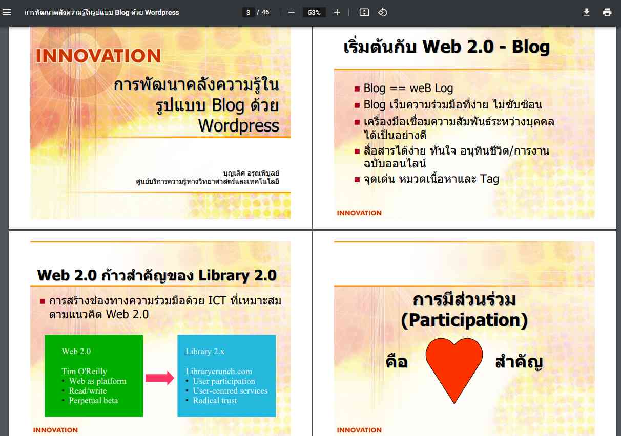 ารพัฒนาคลังความรู้ในรูปแบบ Blog ด้วย Wordpress