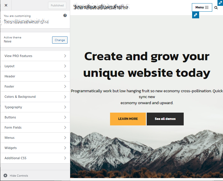 คือ หน้าต่างควบคุมการแสดงผลที่ผูกโยงกับ Themes ซึ่งบริการส่วนนี้จะมีให้บริการแตกต่างกันไป ในกรณีที่ใช้ Twenty Sixteen จะพบตัวเลือก Site Identity, Colors, Header Image, Background Image, Menus, Widgets, Homepage Settings, Additional CSS, และ Related Posts